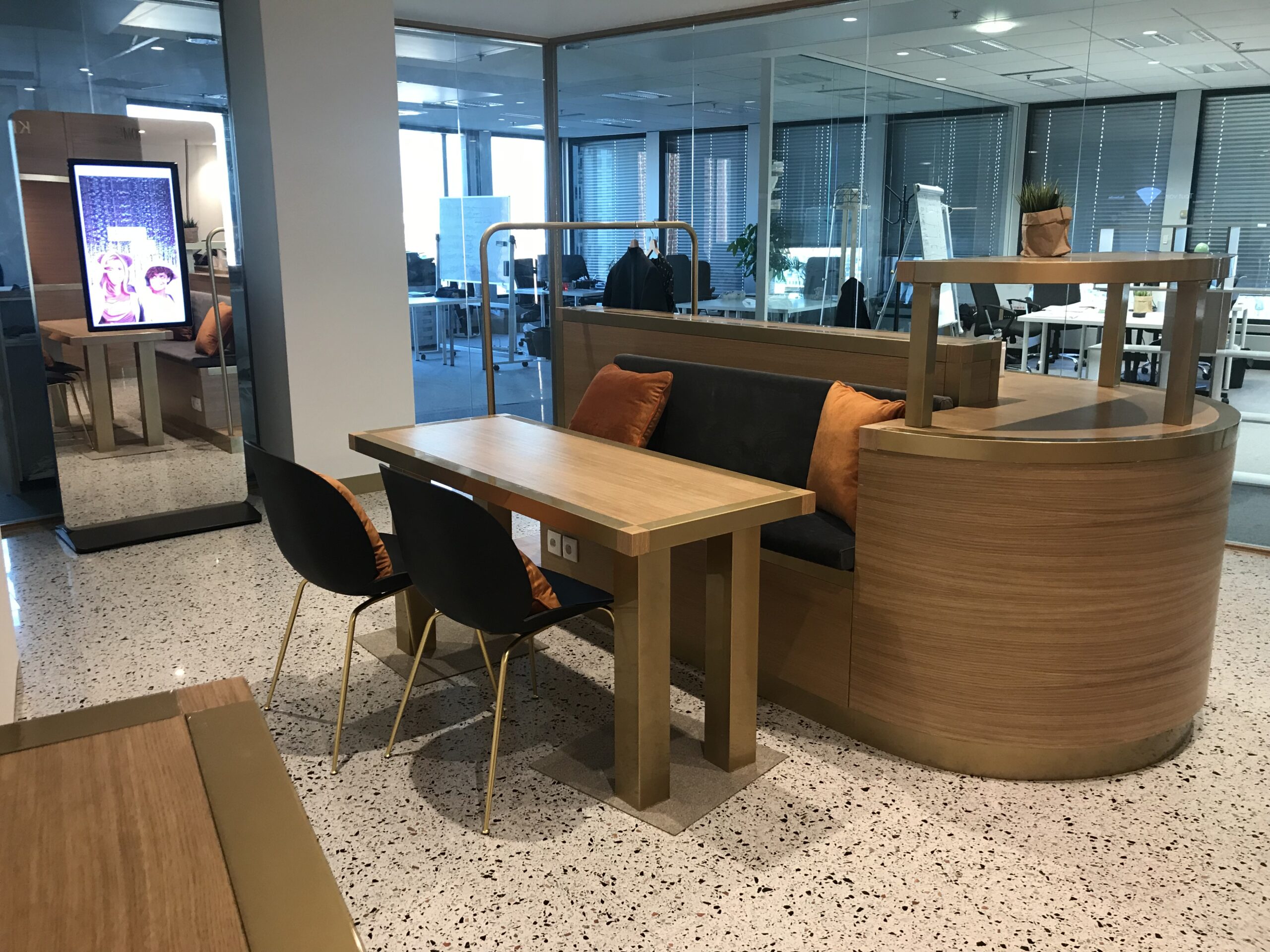 Ce petit espace doit être pensé pour favoriser la discussion. Il sera souvent meublé de petits canapés, entouré de plantes vertes pour apporter une touche de nature, de gaieté et de dynamisme. Ces espaces privilégiés sont mûrement réfléchis dès la conception de l’agencement.