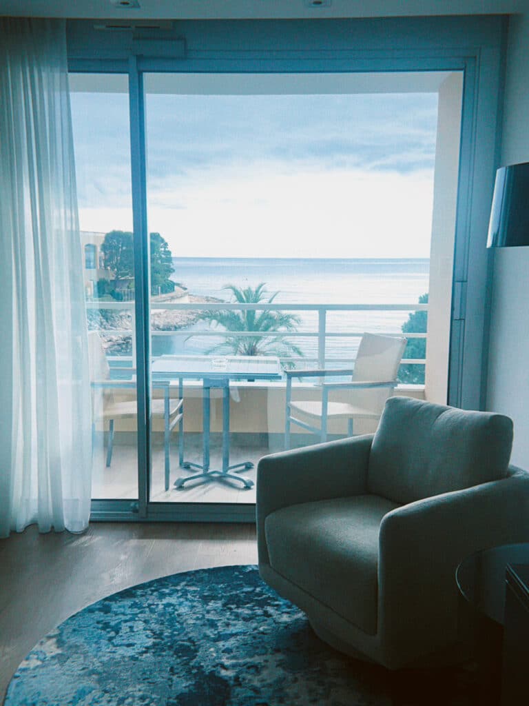 Nous avons ainsi sélectionné un fauteuil pivotant, un tapis rond dans des tons de bleu rappelant la mer — l’hôtel étant situé en bord de mer —, et fait fabriquer sur mesure de petits traversins dans différentes nuances de bleu. Enfin, des miroirs éclairants ont été choisis pour les salles de bains afin d’allier fonctionnalité et élégance.