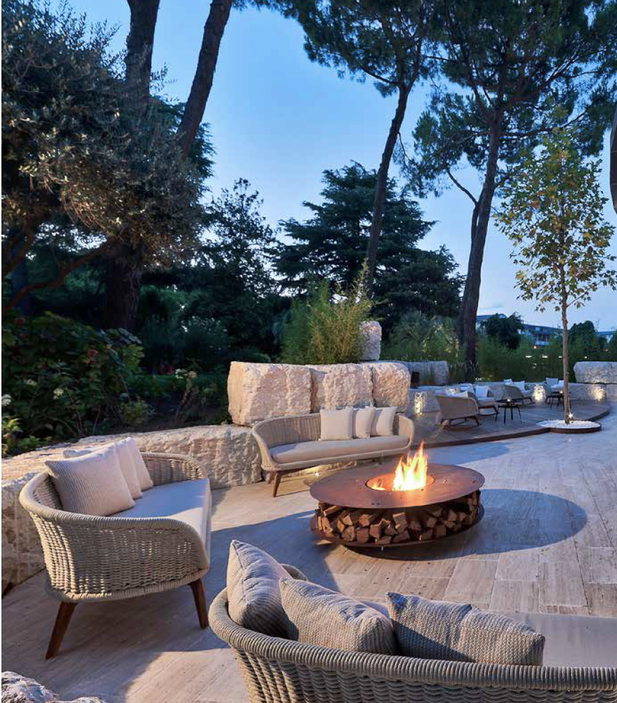 Si nous parlons de terrasse pour un hôtel design haut de gamme l’agencement de la terrasse s’organisera différemment, avec plus d’espace et aussi en choisissant du mobilier raffiné. Peut être avec des petits canapés d’extérieurs pour une ambiance cosy.
