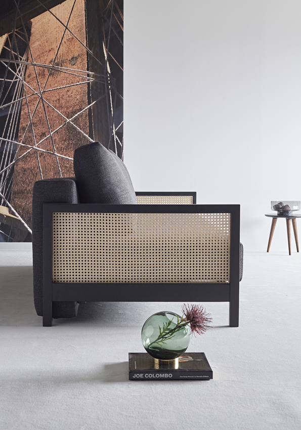 il est constitué d’un cannage beige sur les cotés. Confortable multifonctionnel, il vous permet d’avoir un canapé de style pouvant se transformer en lit.