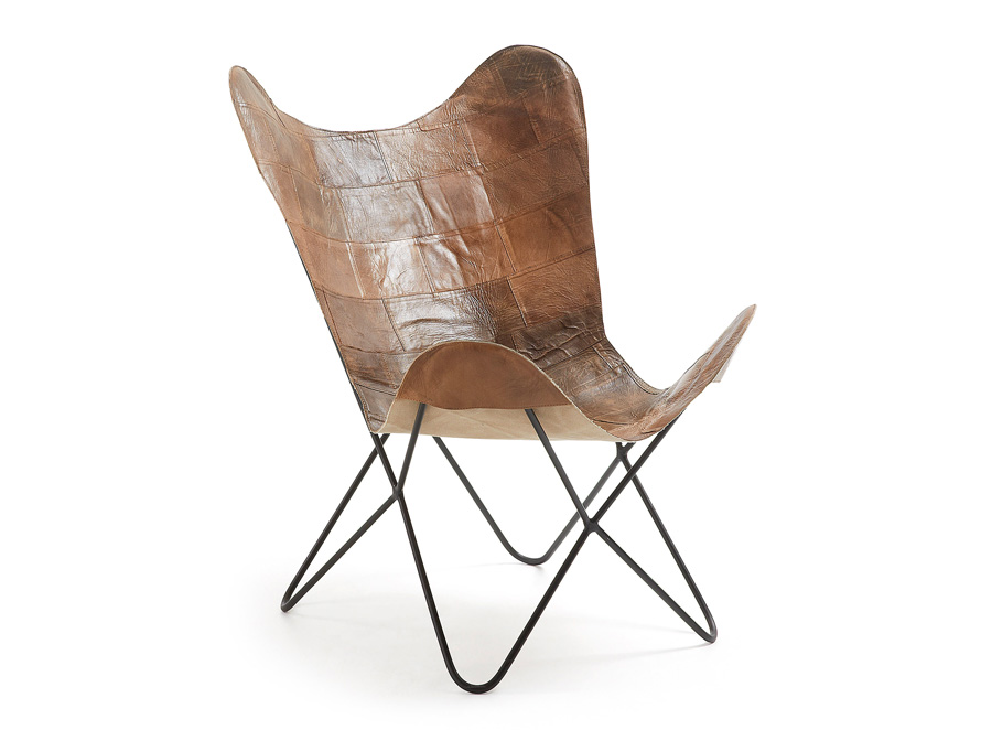 Siège en patchwork de cuir véritable avec sructure en métal.