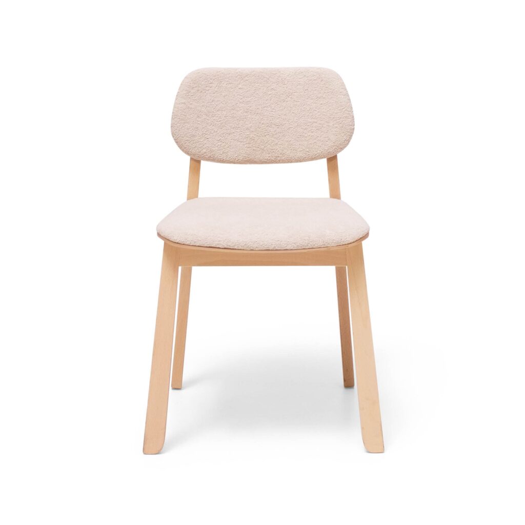 Cette chaise séduit par sa fraîcheur et son élégance naturelle. Sa coque en bois enveloppe délicatement une assise et un dossier généreusement rembourrés, offrant un équilibre parfait entre confort et esthétique.